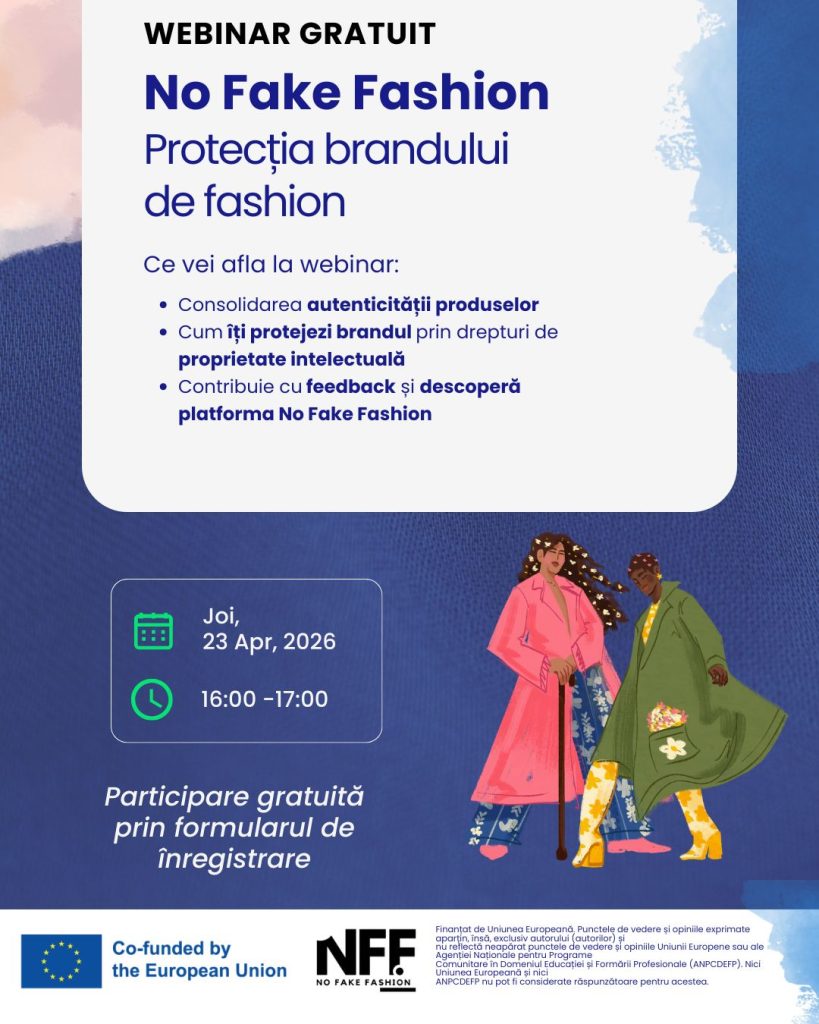 Înscrie-te acum la workshopul național gratuit No Fake Fashion: Protecția brandului de fashion organizat de Reginnova NE și află cum îți poți proteja brandul de fashion într-o piață tot mai afectată de produse falsificate.